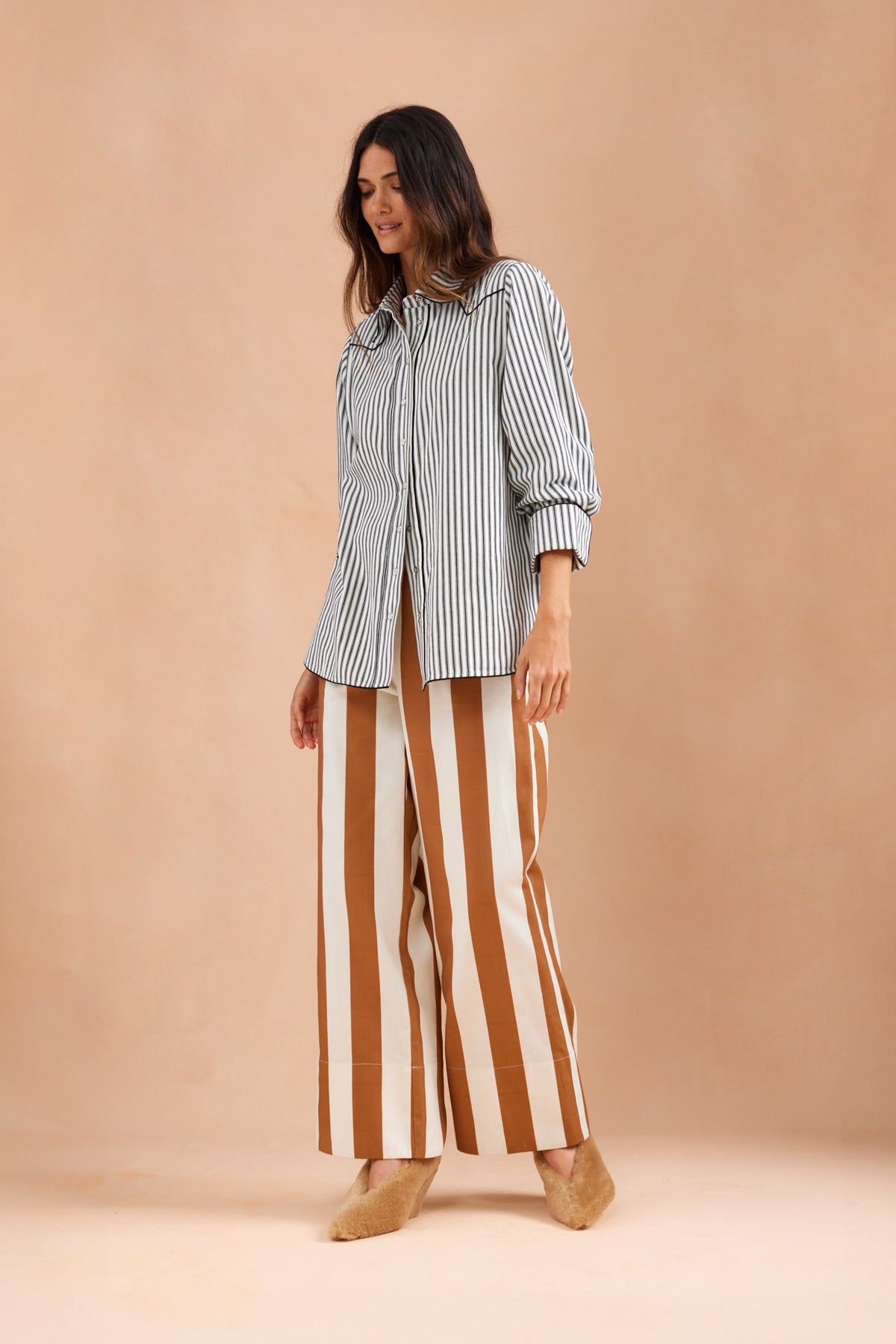 The Shipwrecks shirt is for those who like their classics with a side of rodeo. Made from structured cotton denim feel twill with sharp black piping and pearl snap buttons, it keeps things classic mattress ticking Binny with a touch of piping cowgirl. A wardrobe staple with a tiny on trend twist. Be like Bella Hadid & Beyonce. Texas Ticking Stripe Hold 'Em.ย